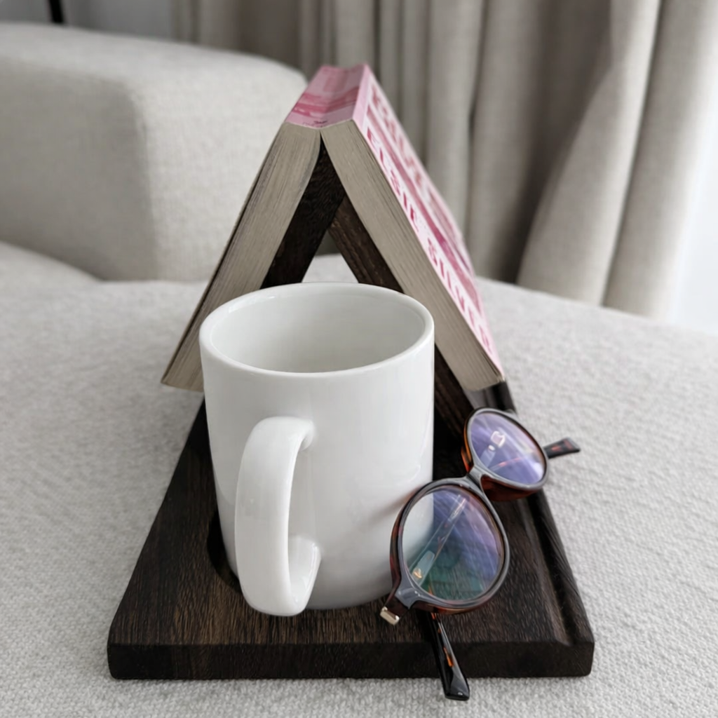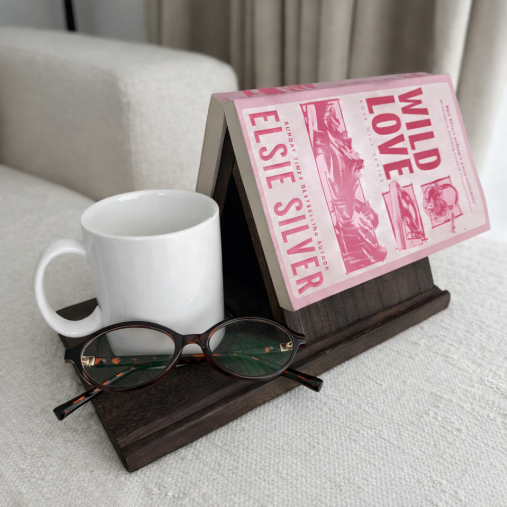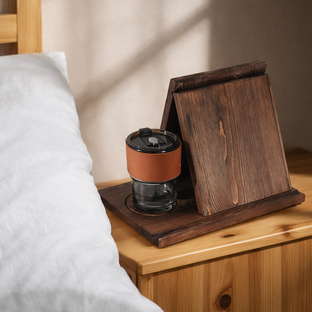 Bokhållaren är designad för att hålla din bok öppen och synlig, men det finns gott om plats för glasögon, telefon, en kopp kaffe eller andra småsaker du använder dagligen. Din lilla personliga organizer för nattduksbordet eller skrivbordet.