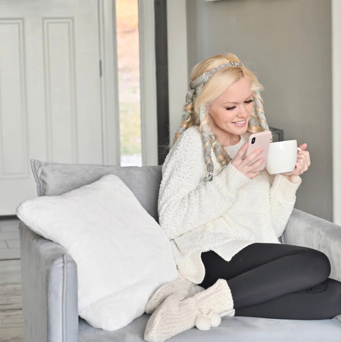 Dela håret i sektioner. Linda varje sektion runt bandet, fäst med hårbandet och sov. På morgonen löser du upp håret och formar lockarna med fingrarna. Klart på under 5 minuter.